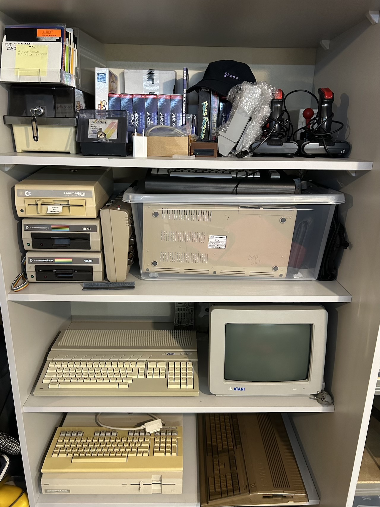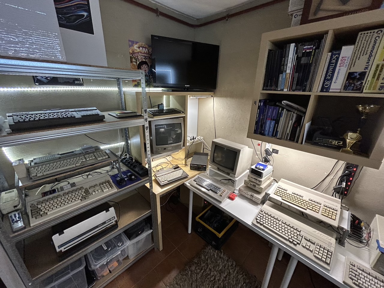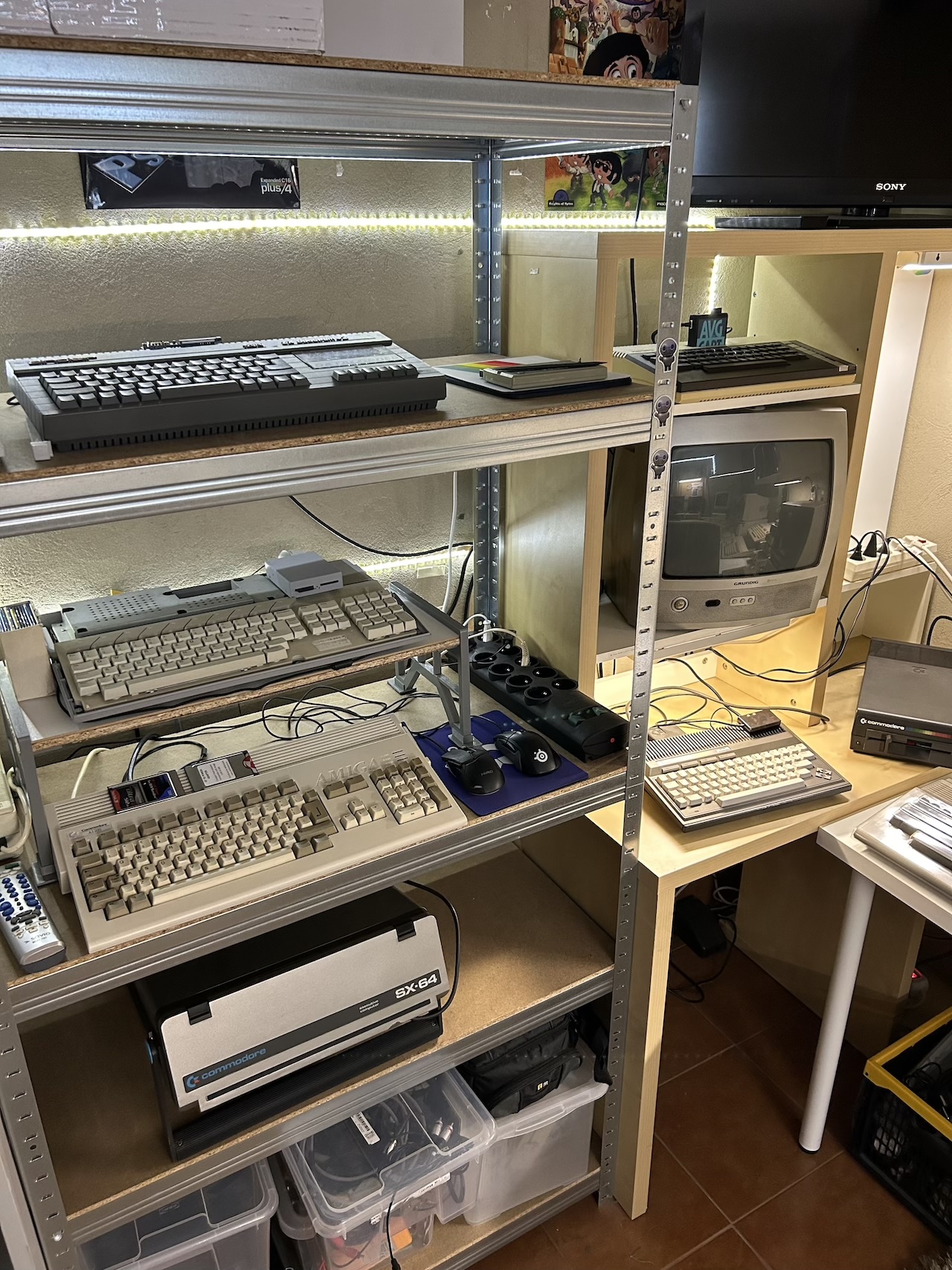 This is the status of my retro computers collection. For last 15 years I’ve had more than 150 computers in my basement. Now it’s more or less 40 of them. Commodores, Ataris, Amigas, SGIs, ZX Spectrums, and numerous: parts, disc drives, cables, ram extensions, floppy discs, cartridges, etc, etc.